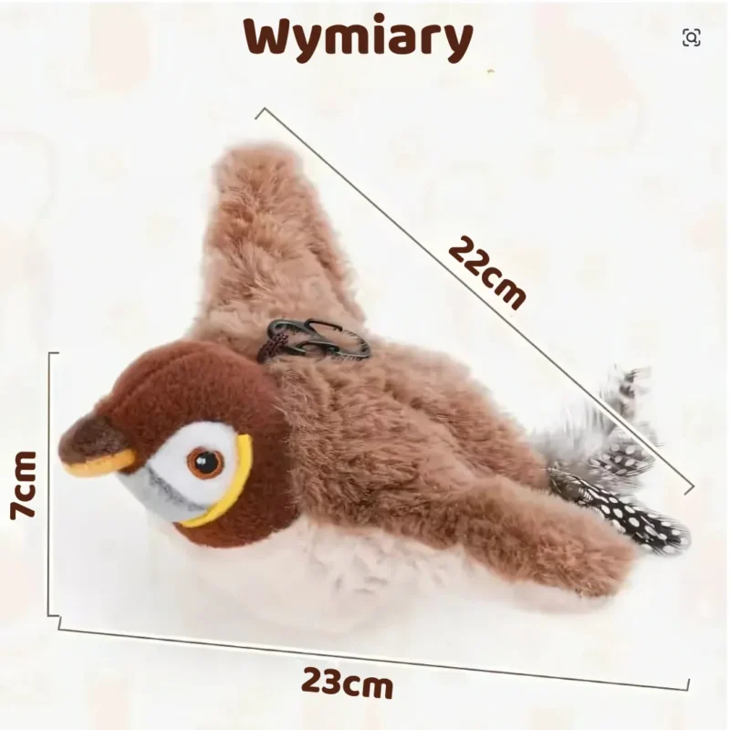 Na szyi zabawki znajduje się zaczep, do którego możesz przymocować sznureczek lub żyłkę – dzięki temu ptak może „latać”, a zabawa staje się jeszcze bardziej realistyczna i angażująca! 🐾🕊️