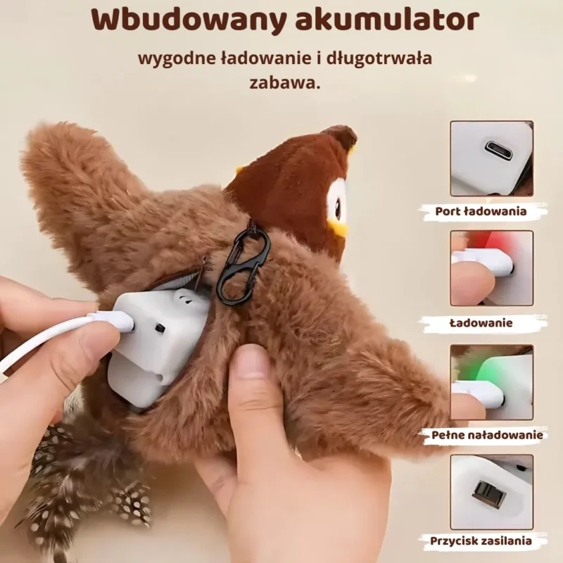 Innowacyjne ruchome skrzydła, realistyczne dźwięki, możliwość dodania kocimiętki oraz łatwe czyszczenie — wszystko zaprojektowane z myślą o Tobie i Twoim kocim przyjacielu.